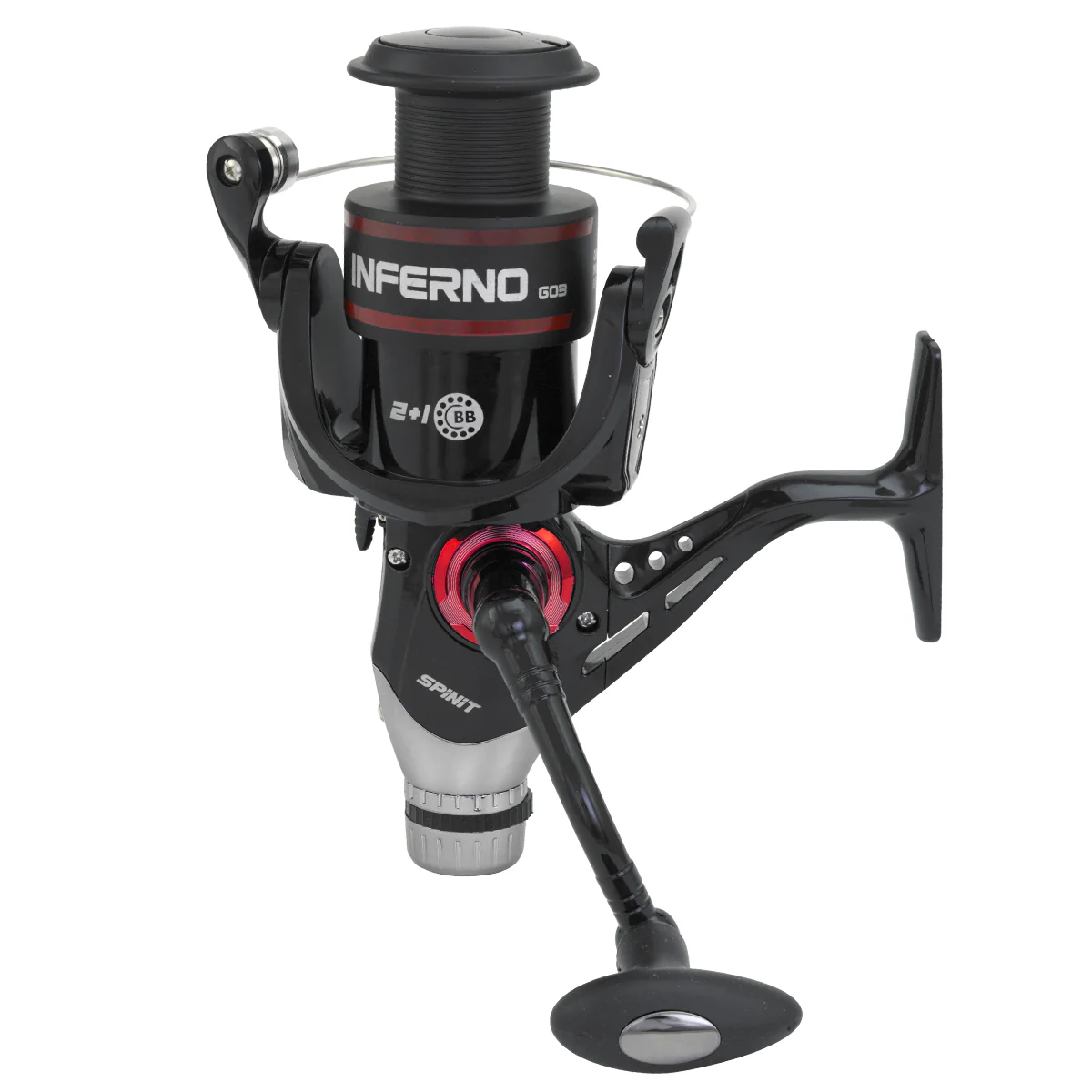 Un nuevo reel SPINIT serie INFERNO de freno trasero, en varios tamaños. Esto permite utilizarlo para todo tipo de pesca en agua dulce a un precio accesible. Su Grip Sintético antideslizante permite un agarre cómodo y seguro. Su carrete de grafito es liviano y resistente.